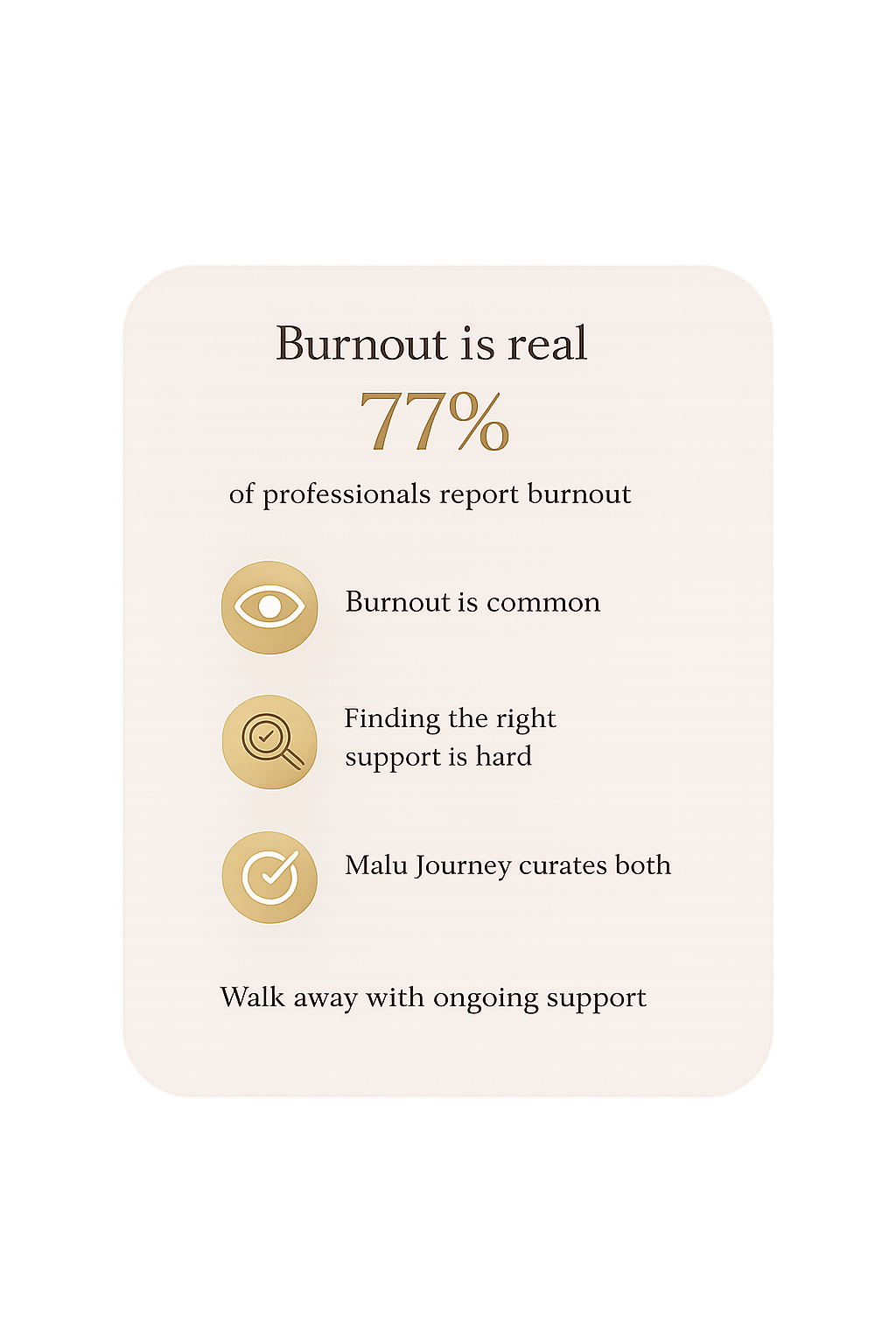 From there, Malu Journey curates licensed therapists and experienced coaches across multiple modalities — so you don’t have to search, guess, or choose between healing and ambition.
